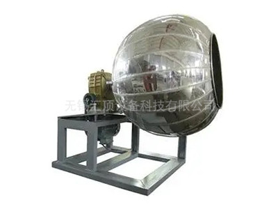 為使芯片盡快在其表面均勻涂上包衣結(jié)晶,并達(dá)到拋光目的,須先對(duì)鍋內(nèi)芯片分次噴糖漿,再通過鍋體順時(shí)針旋轉(zhuǎn),使糖衣片在鍋內(nèi)翻滾、磨擦、研磨,使糖衣均勻。同時(shí)向鍋內(nèi)通入熱風(fēng),迅速除去藥片糖衣表層水份,獲得包裹均勻、光滑的糖衣片。本機(jī)是糖衣工藝的常用設(shè)備,以穩(wěn)定的鍋體線速度旋轉(zhuǎn),使藥片在鍋內(nèi)形成拋物曲線,達(dá)到糖衣層厚薄均勻,色澤光亮,不發(fā)生麻點(diǎn)的工藝要求。