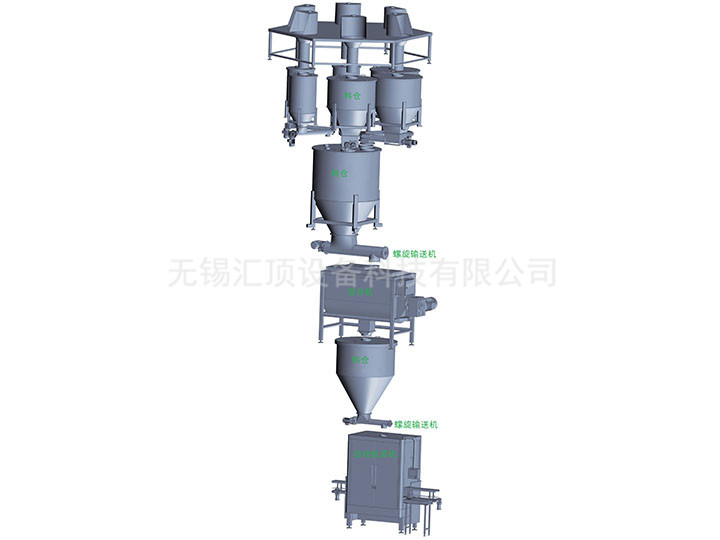該配料系統(tǒng)主要用于多種物料的配料包裝輸送生產環(huán)節(jié)。該系統(tǒng)可包括原料上料輸送、原料儲存、選擇配方、自動配料、物料輸送、混合拌勻、裝袋縫包全過程。根據用戶的場地布局和具體要求,可進行差異化設計,滿足客戶對性價比的要求。